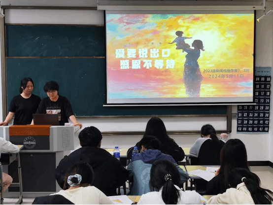 “同學們,猜一猜明天是什么節(jié)日啊?”“母親節(jié)!”5月11日,新聞傳播學類專業(yè)2023(7)、(8)班在K202教室開展以“愛要說出口,感恩不等待”為主題的團建活動。活動開始前,活動負責人、新聞傳播學類專業(yè)2023(7)、(8)班的班長楊雨霏、朱研溪提前為每位同學準備好信紙和信封。朱研溪說:“我們希望通過寫信這種傳統(tǒng)而深情的溝通方式,讓同學們勇敢表達自己的心聲,將對母親的愛訴說于筆尖。”學生們觀看一段關于母愛的感人短片后,...